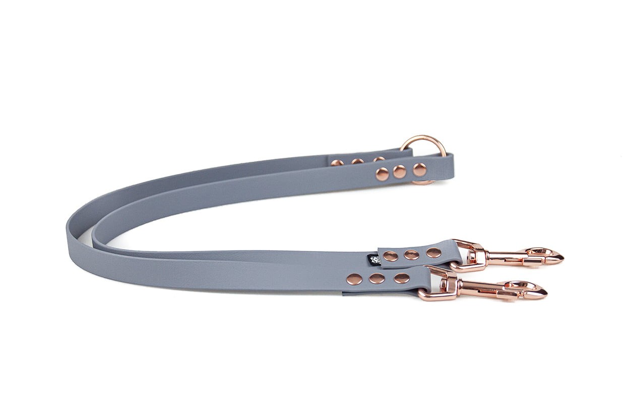 Dwójnik z BioThane® szczególnie idealnie sprawdzi się dla właścicieli dwóch psów. Koniec z zaplątanymi smyczami. Wystarczy, podpiąć rączkę lub dostępną smycz do kółka.