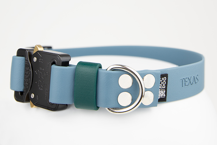 Obroża została wykonana z BioThane®, produkowanego i opatentowanego Stanach Zjednoczonych. Materiał został poddany wielu testom wytrzymałościowym i jakościowym. BioThane® jest miękki i elastyczny, doskonale imituje skórę naturalną, grubość materiału to 2,5mm.