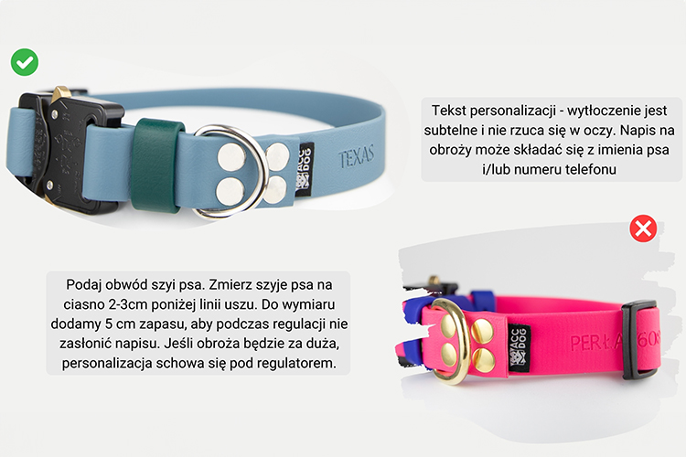 W obroży zastosowaliśmy podkładkę ochronną, którą można spersonalizować wybierając dowolny kolor.