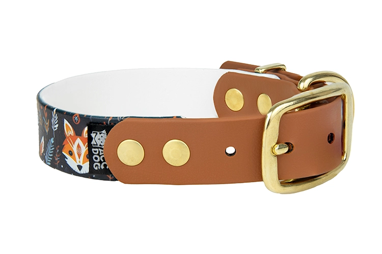 Obroża BioThane® z nadrukiem Liski z taśmą w kolorze Classic Brown / Sky / Classic Red lub Neon Orange