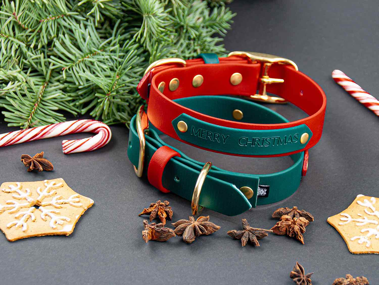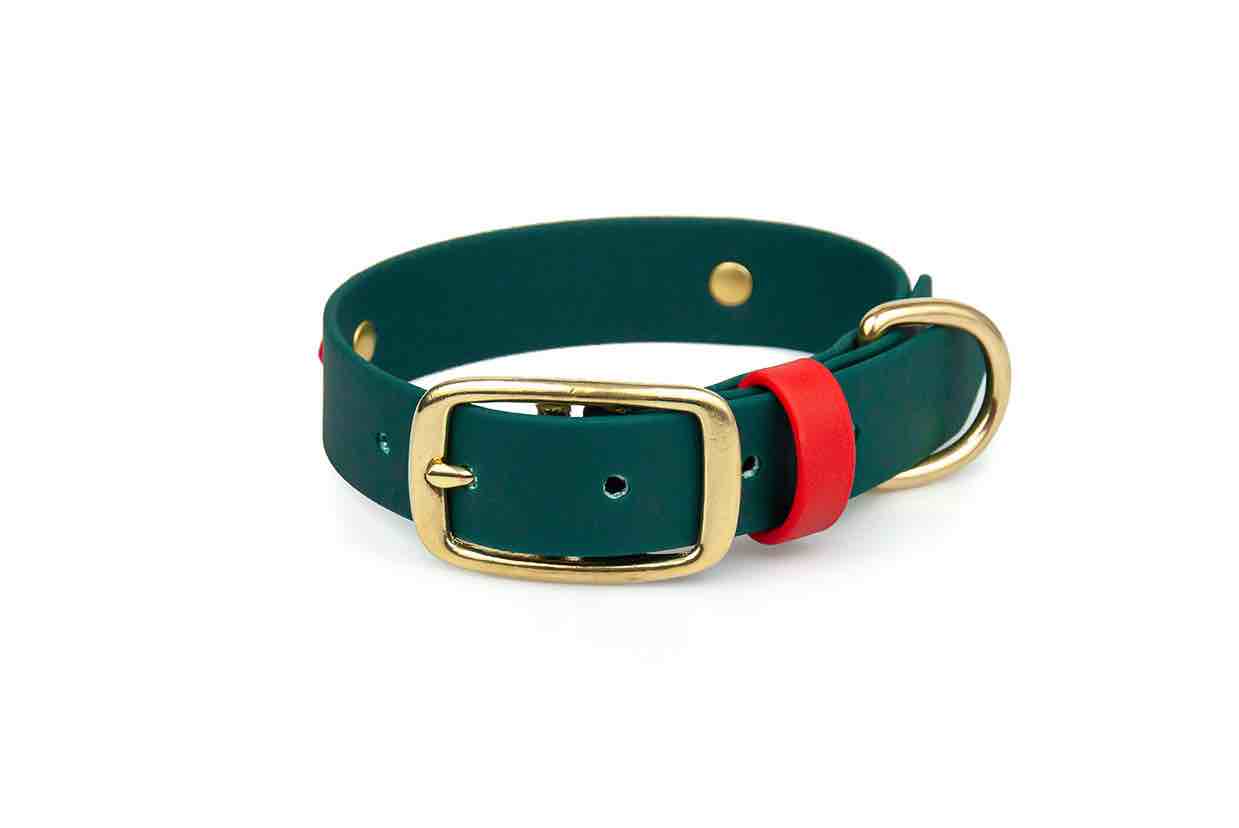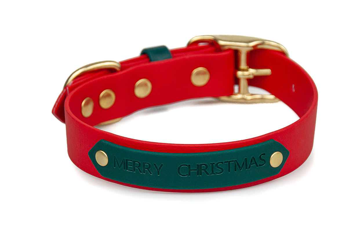 Obroża, świąteczna Merry Christmas, została stworzona na bazie obroży z kolekcji Rainbow. Na naszywce widnieje napis Merry Christmas lub własny, decydujesz sam. Dostępne są dwa warianty kolorystyczne Classic Red z naszywką Forest lub Forest z naszywką Classic Red. Obroże są wersji limitowanej i dostępne są w sprzedaży do 13.12.2024 i dajemy gwarancję dostawy przed świętami. Wariant okuć jest tylko mosiężny (te widoczne na zdjęciu), a obroże są dostępne w szerokościach 19 mm oraz 25 mm.